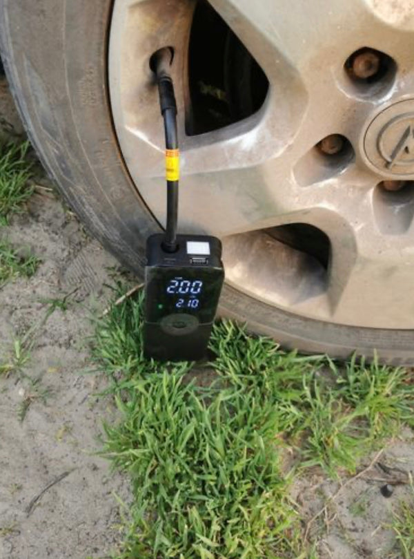 Dieser kompakte Luftkompressor passt mühelos in jede Ablage im Auto. Dank seines handlichen Formats hast du ihn jederzeit parat – ob für Reifen, Bälle oder andere aufblasbare Gegenstände.