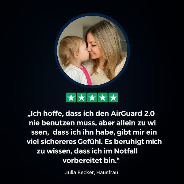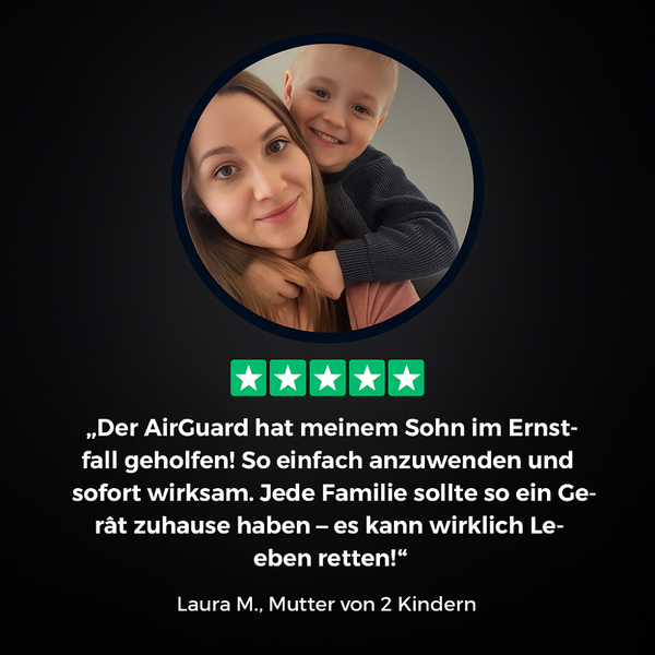 Der AirGuard entfernt das Hindernis schnell und sicher – oft in weniger als 20 Sekunden. Sobald die Atmung wiederhergestellt ist, beruhige die betroffene Person und kontaktiere bei Bedarf ärztliche Hilfe.